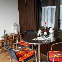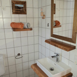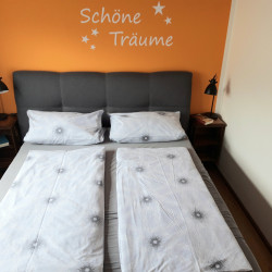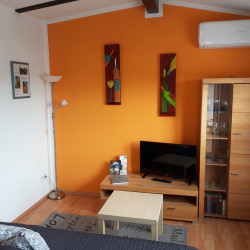Die gemütliche 44 m²-große Ferienwohnung ist mit einem eigenen Eingang über eine Treppe zu erreichen. Die Wohnung besteht aus einem Schlafzimmer, einem Badezimmer mit Dusche und WC, einer Küchenzeile, einem Balkon und einem Wohnzimmer mit separater Bettcouch. Für max. 4 Personen und Ihr Baby ist hier ausreichend Platz vorhanden.